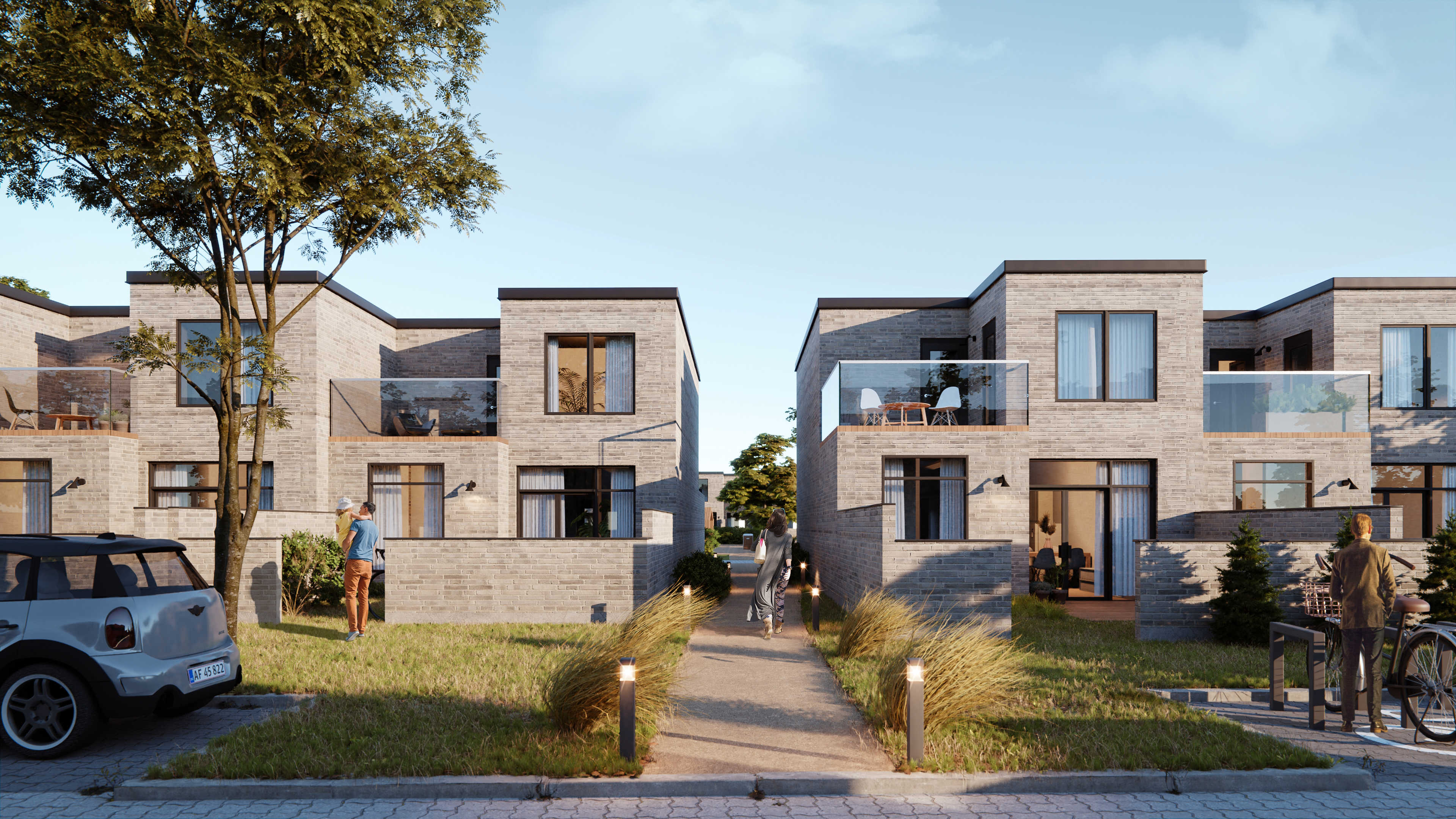 Området kan rumme 45 tæt-lav boliger opført i 1 og 2 etager. Bygherren forventer, at bebyggelsen kommer til at indeholde cirka 14 familieboliger i 1 og 2 etager, 14 seniorboliger i 1 etage samt 17 singleboliger, som er mindre boliger beregnet til en person i 2 etager. Bebyggelsen udføres som gårdhavehuse med små haver/gårde, der omkranses af lave mure, med facader udført primært i blank gul-grå teglsten, men kan også pudses og udføres med farver inden for jordfarveskalaen. Inden for hvert byggefelt skal alle boligers facader og facadeelementer såsom døre og vinduer udføres i ens materialer og farver. Boligerne opføres med flade tage, hvorpå der kan placeres solceller til at skabe strøm for varmepumper (varmekilde). En del af bebyggelsen placeres omkring et fælles opholdsareal med legeplads og væksthus.