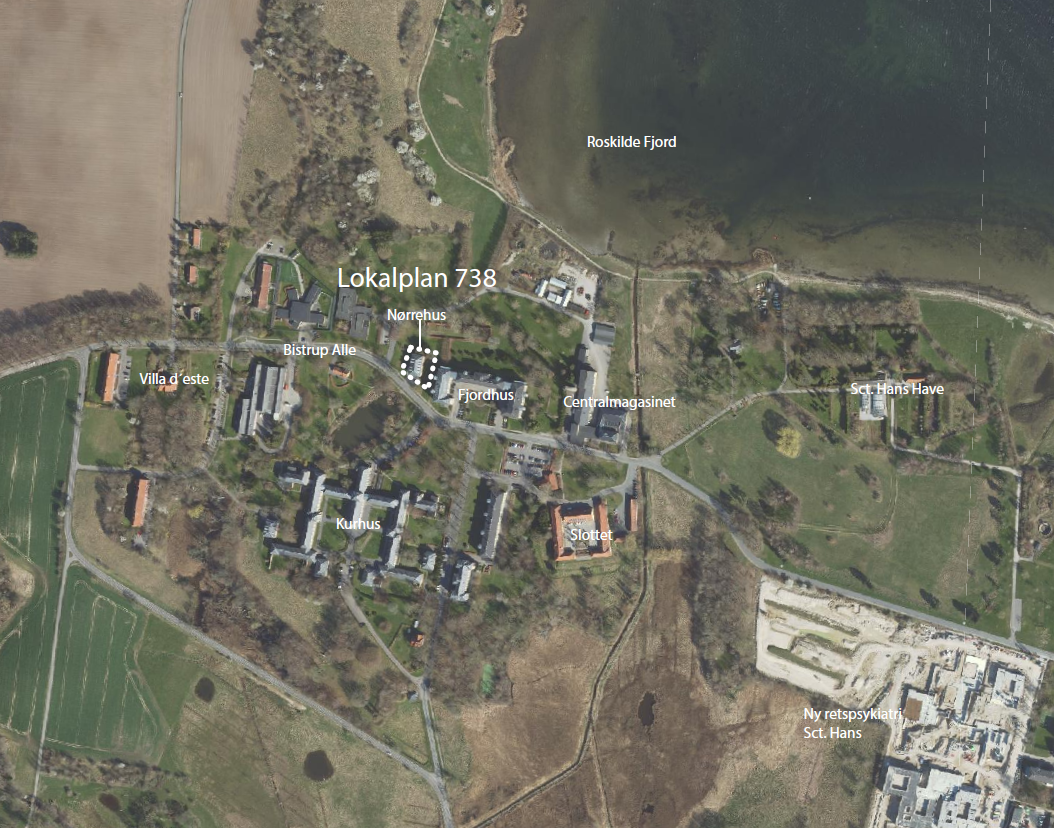 Lokalplanområdet er ca. 1400 m2 og består af en eksisterende bygning, Nørrehus, der tidligere har været en del af psykiatrisk hospital Sankt Hans.