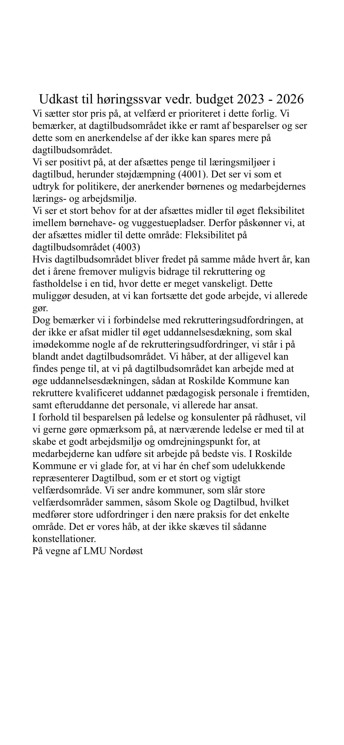 Høring af forslag til budget 2023