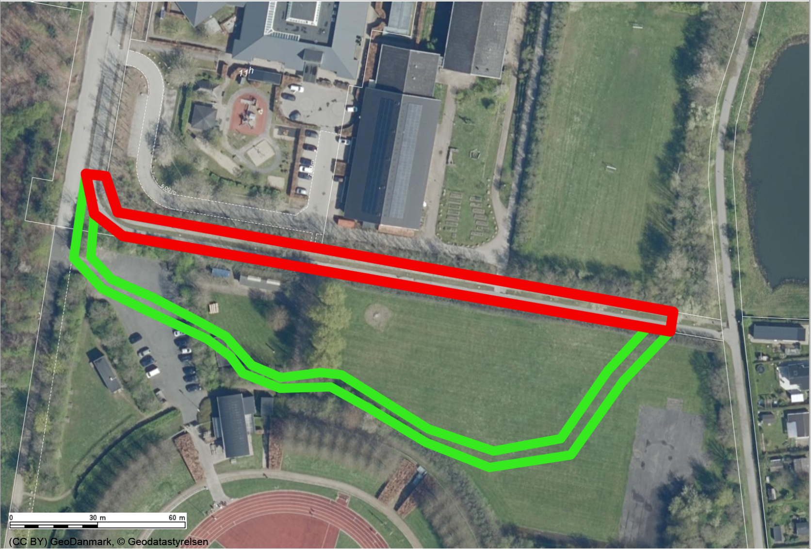 På det vedlagte kortbilag fremgår den del af stien, som ønskes nedlagt med rødt, hvor det nye forløb af stien er angivet med grønt