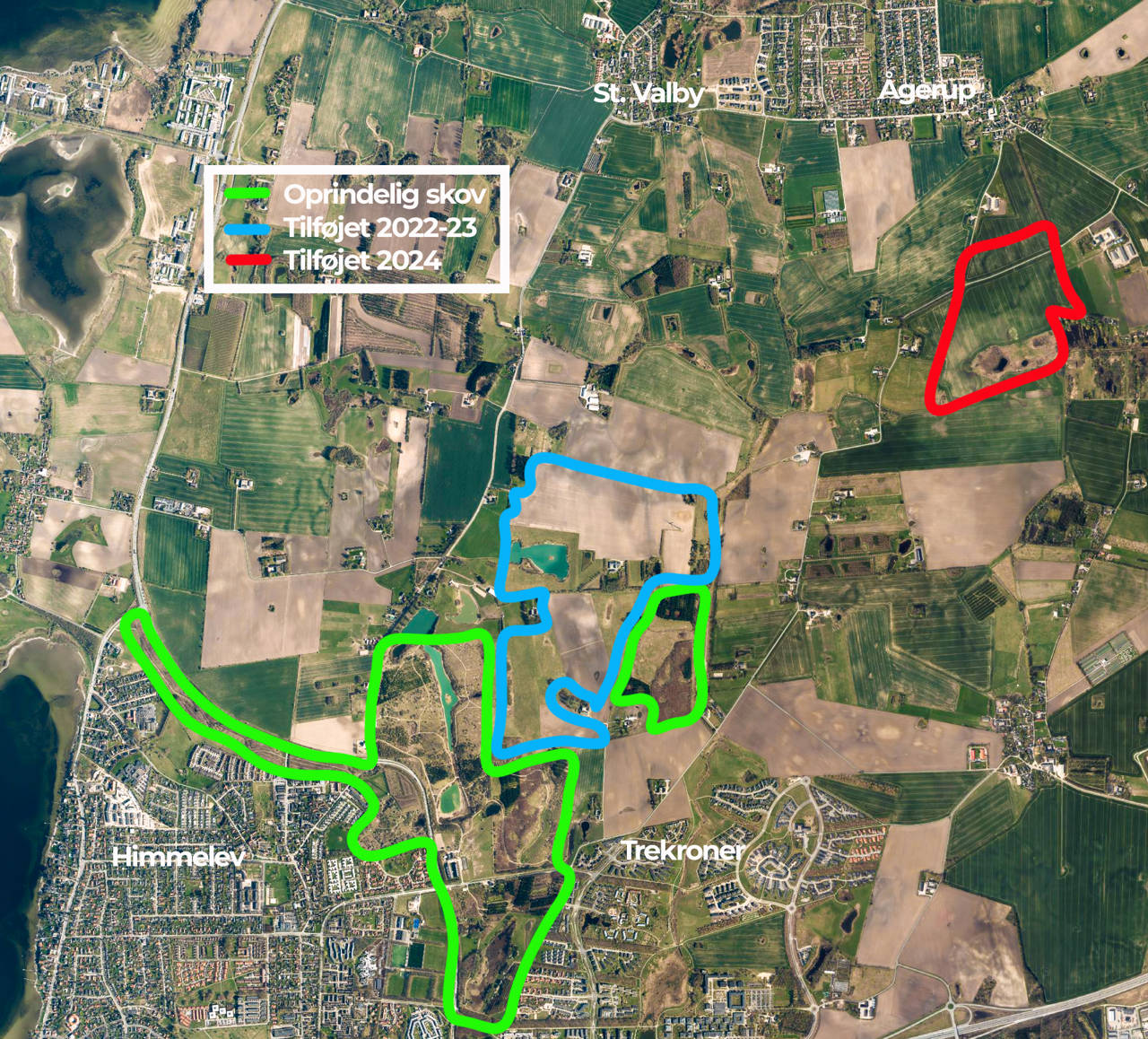 Opkøbet er den tredje udvidelse af Himmelev Skov siden 2022, hvor parterne købte hhv. ca. 40 og 50 ha i den sydlige del af projektområdet. Disse arealer hænger sammen med den ”gamle” Himmelev Skov. Det første areal er ved at blive tilplantet - blandt andet med et område til ”skovbadning”.