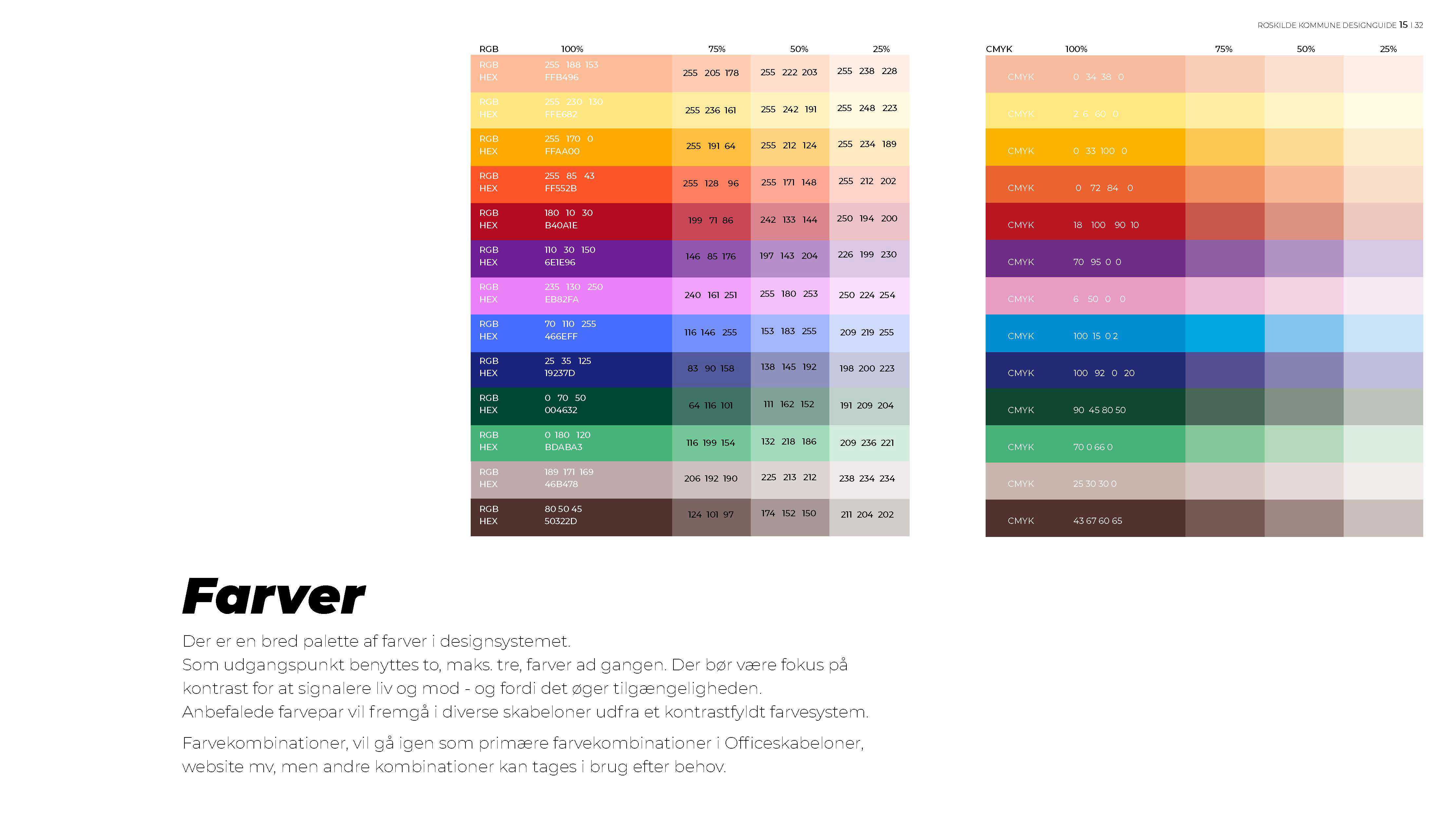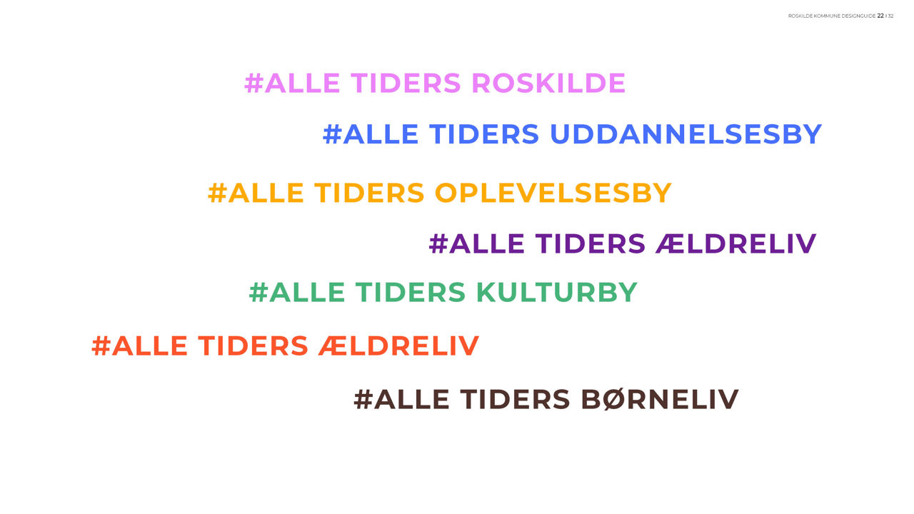 Roskilde Kommunes designguide indeholder logo, skrifttyper og farver, som skal bruges, når man kommunikerer på vegne af Roskilde Kommune.