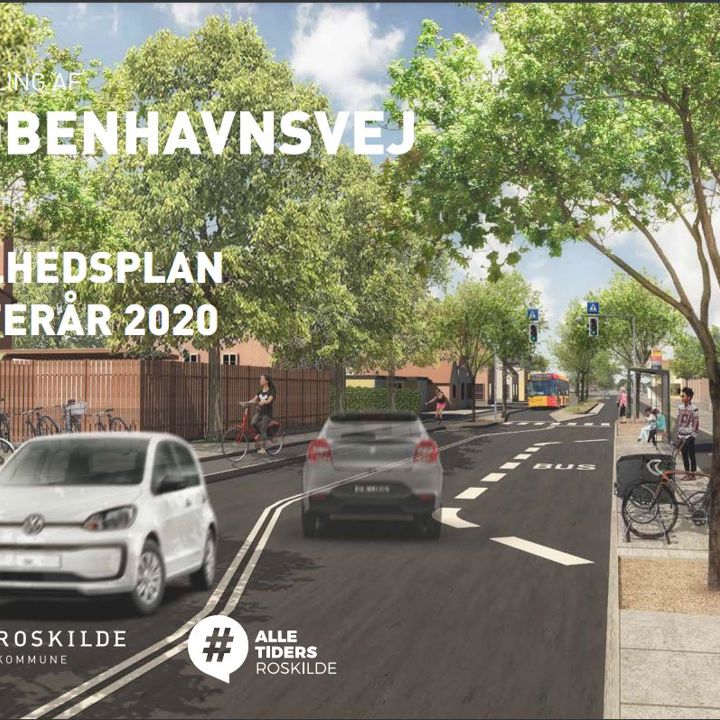 - En overordnet vision og hovedgreb for en samlet udvikling af Københavnsvej, hvor byliv og trafik understøtter hinanden bedst muligt og skaber en værdig adgang til Roskilde ud fra nøgleordene forbind, forskøn og fortæt.