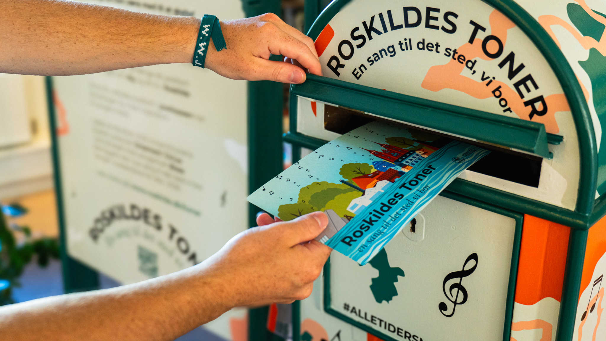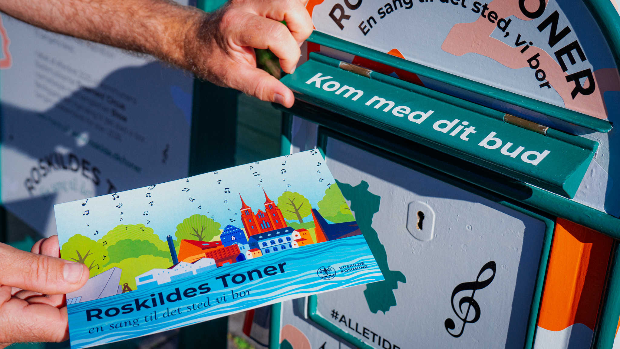 I løbet af august og september 2025 rejser Roskilde Toners postkasse rundt i kommunen. Her kan du tage et postkort og dele noget fra dit liv i Roskilde Kommune.