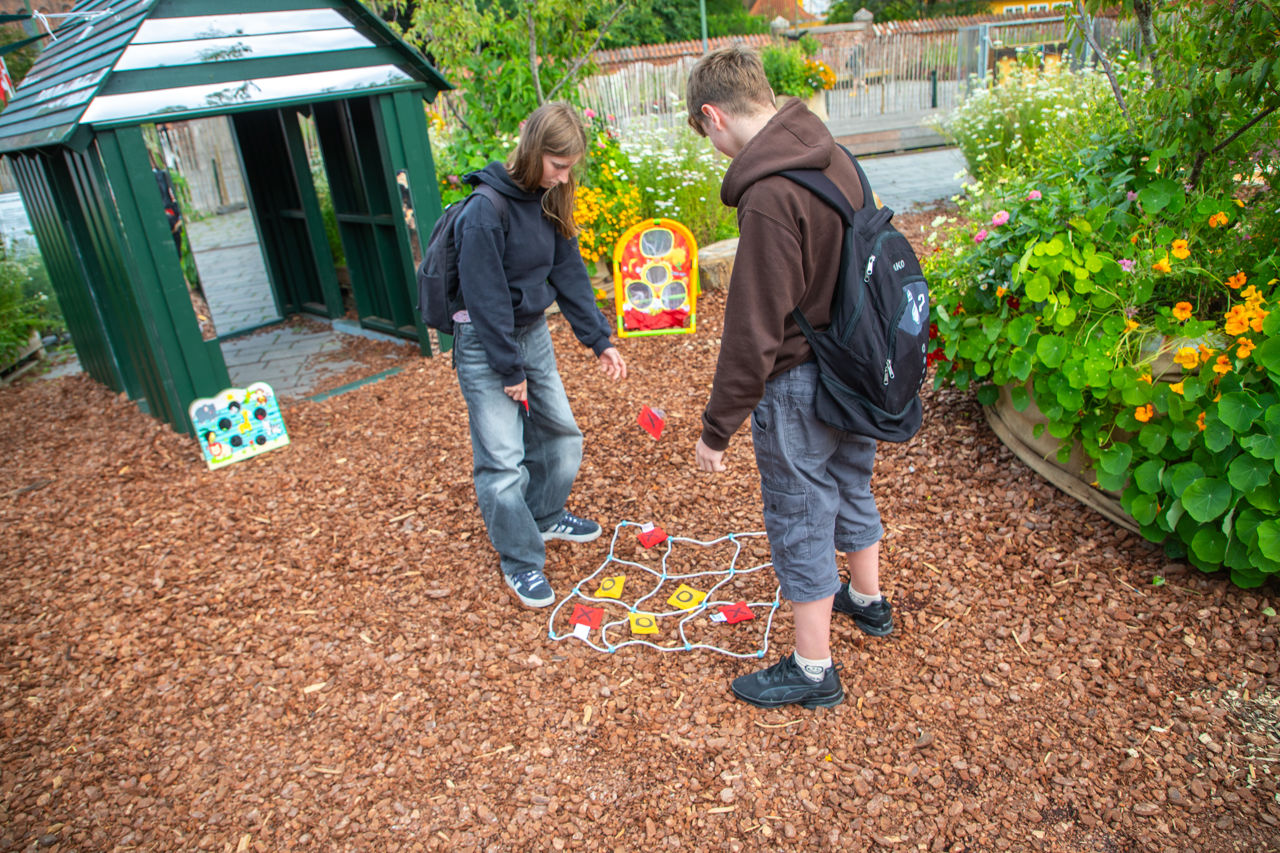 I indretningen integreres en stor sandkasse med rig mulighed for sandleg og med balanceelementer i form af træstammer og træstubbe fra Boserup Kilen.
