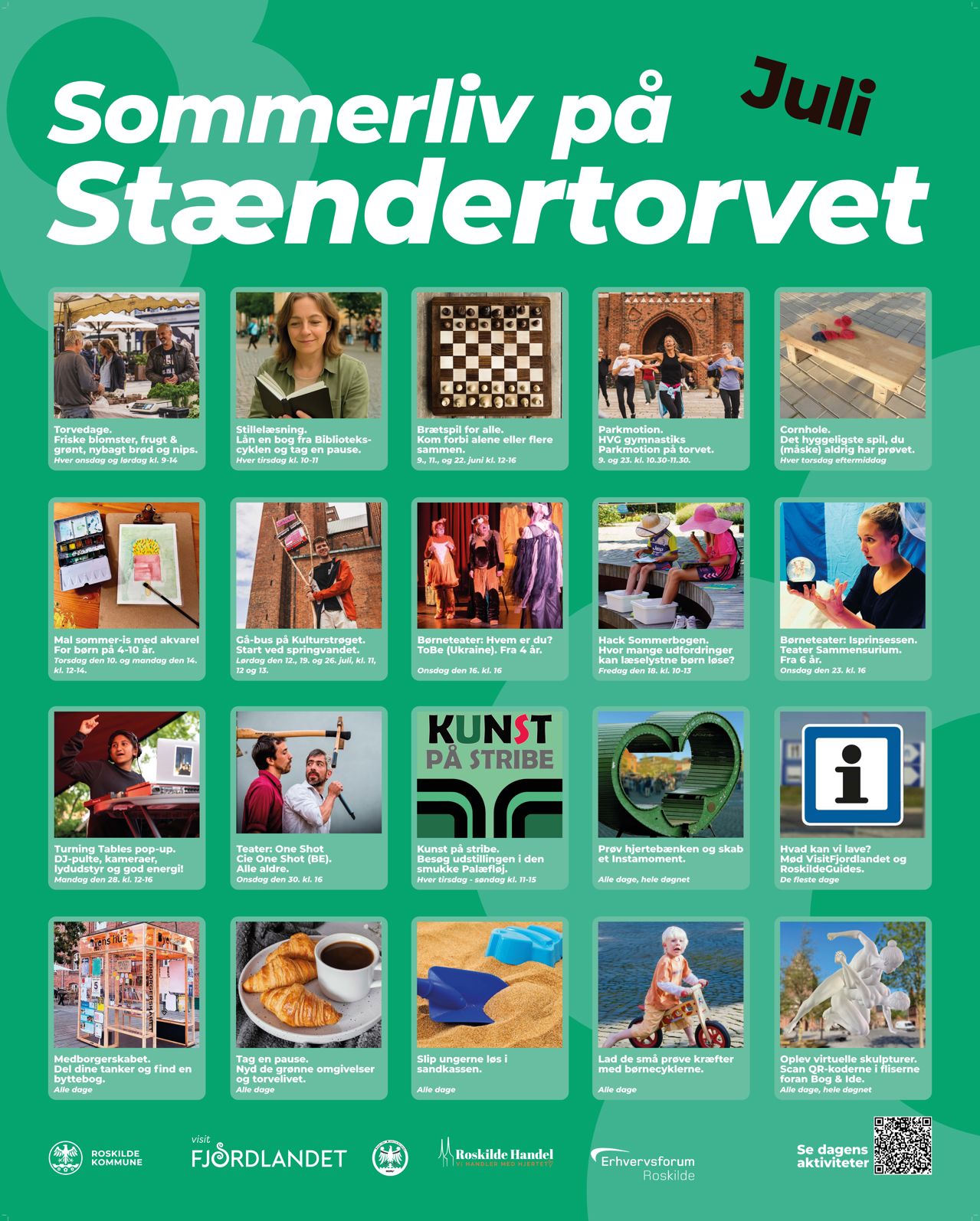 Kom og oplev Sommerliv på Stændertorvet 2025, hvor der er særligt fokus på at skabe et sommerbyrum uden parkering, som skal kunne rumme det daglige liv, og hvor aktører kan byde ind til glæde for alle.