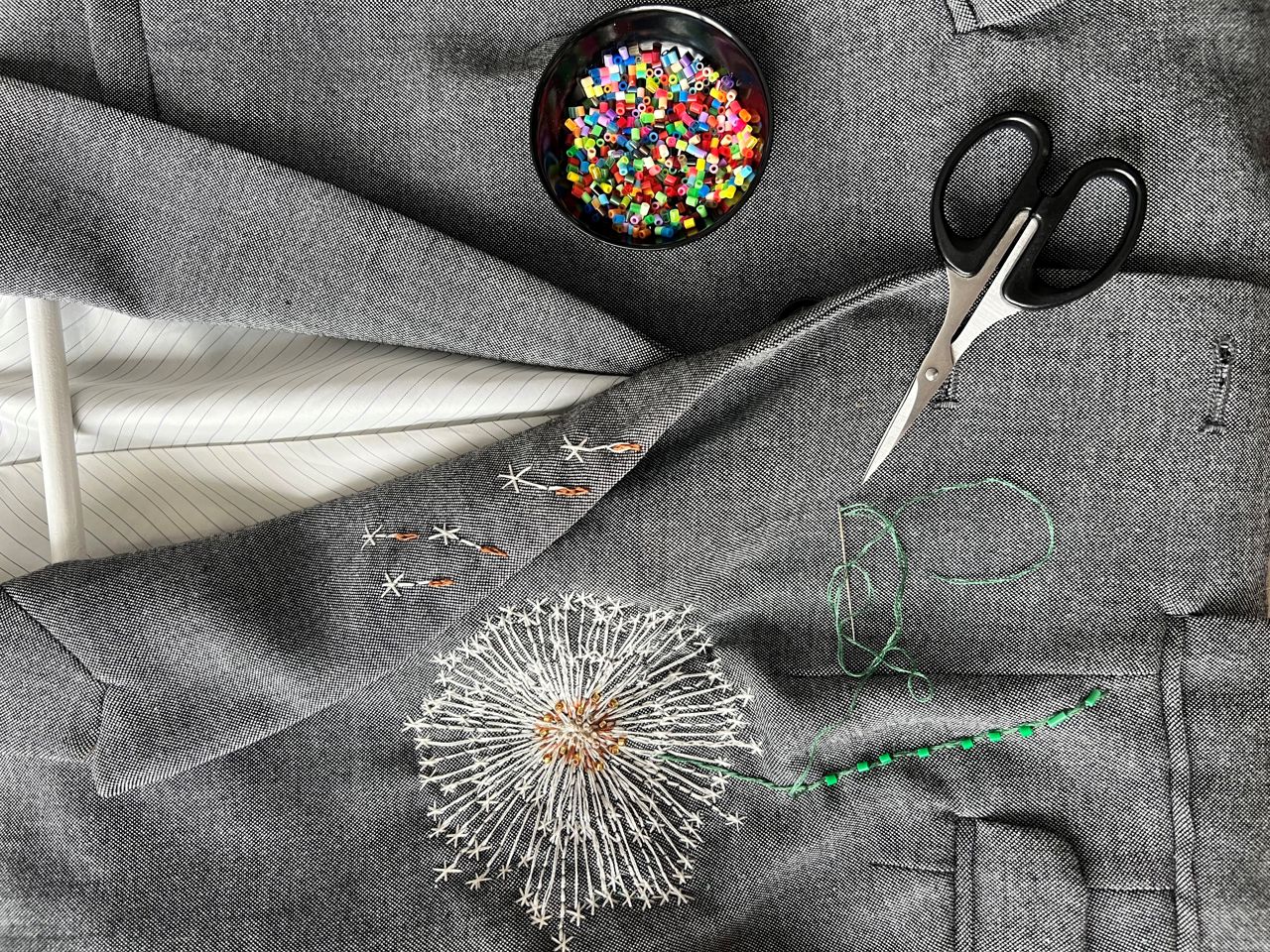 ”Det er en form for meditation for mig at sidde med et sytøj. Samtidig styrker det mit fokus: Én time med stof, nål og perler hver aften gør, at jeg føler et større mentalt overskud næste dag.”
