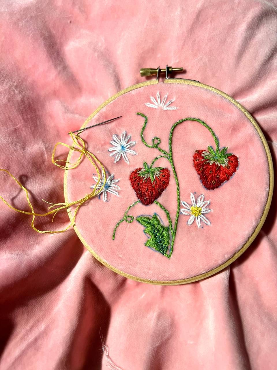 På hendes sofa lyser et sytøj med spraglede perler op. Broderi er en håndarbejdsgren, hun for nylig har kastet sig over. Louise Kildegaard Lindstrøm viser to broderede tasker frem: Én med romantiske skovjordbær og én med et kækt hummermotiv.