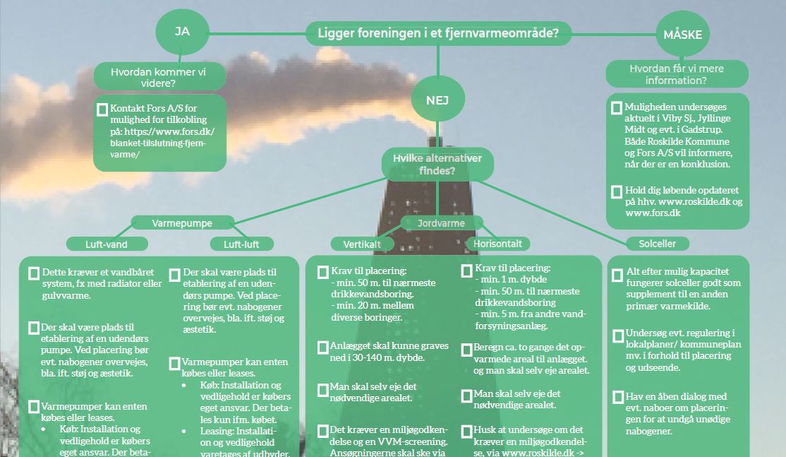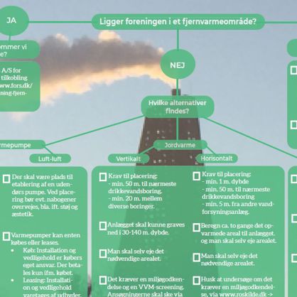 - Hvilke muligheder har I til at omstille til grøn varmeforsyning alt efter om foreningen ligger i eller udenfor et fjernvarmeområde?
