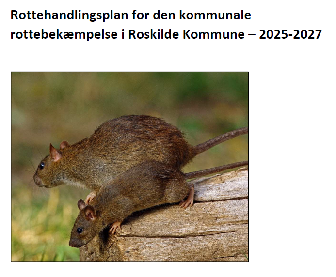 • I Roskilde Kommune har Klima- og Miljøudvalget godkendt Roskilde Kommunes handlingsplan for forebyggelse og bekæmpelse af rotter i Roskilde Kommune.