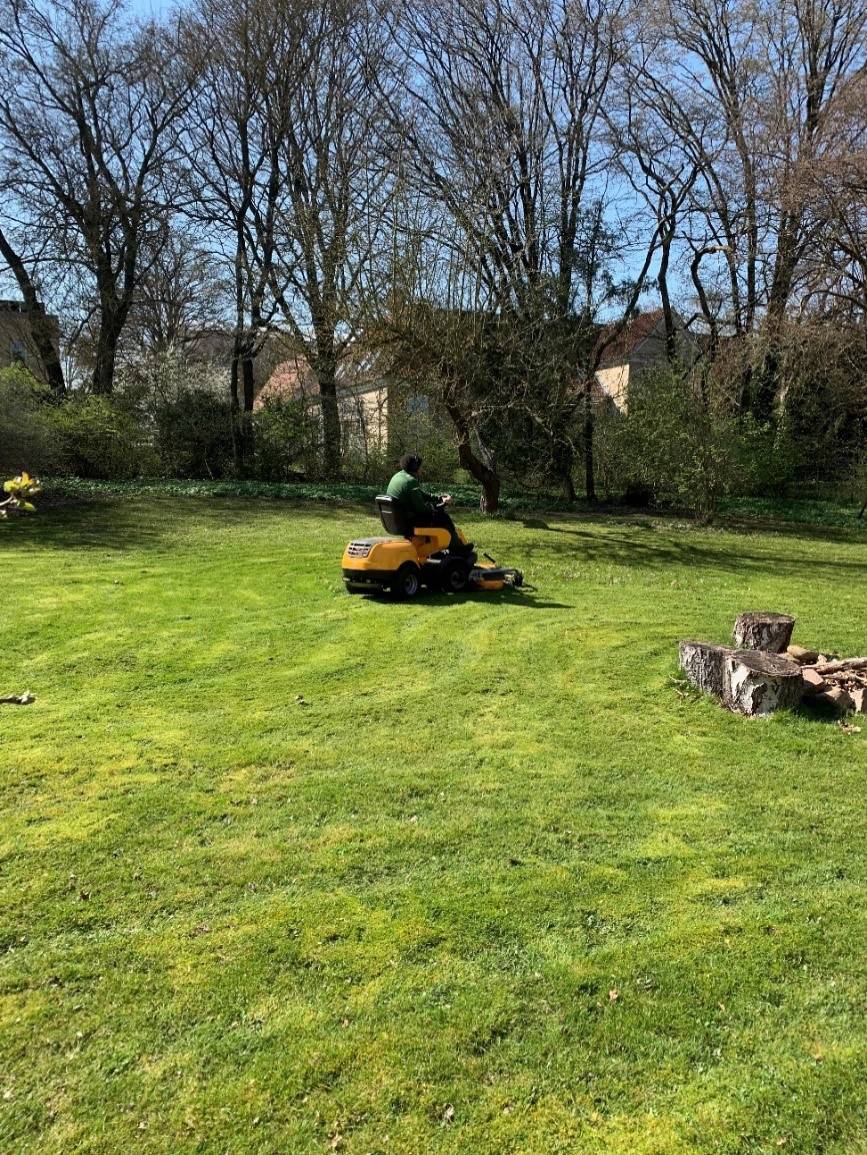 - Ordner grønne områder, slår græs, klipper hæk mm.